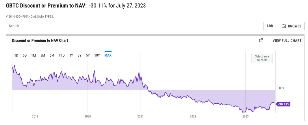 GBTC keeps in a discount to NAV & is unlikely to see a premium anymore